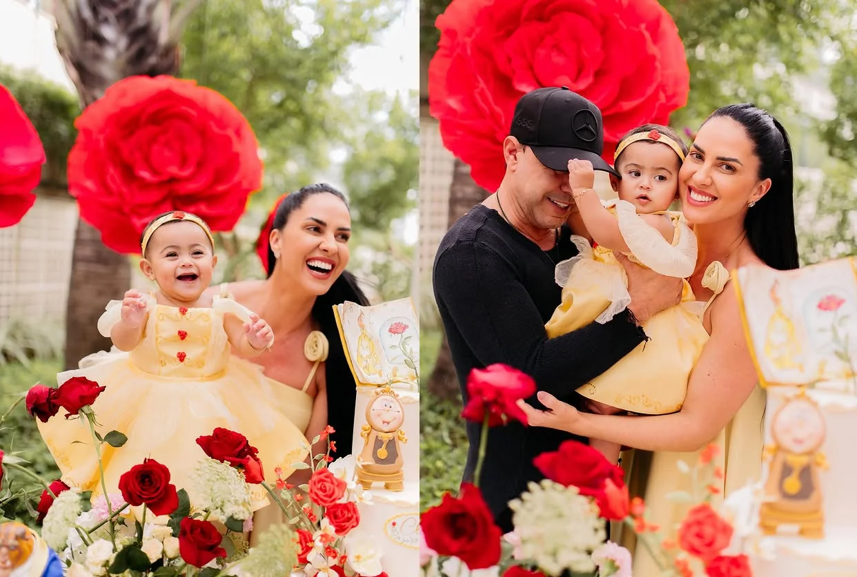 A influenciadora Graciele Lacerda e o cantor Zezé Di Camargo comemoraram, no último domingo (26), os 10 meses de vida da filha Clara, com uma festa temática inspirada na princesa Bela, do clássico “A Bela e a Fera”. A celebração aconteceu em clima de encanto e contou com a presença das filhas mais velhas do cantor, Wanessa Camargo e Camilla Camargo.