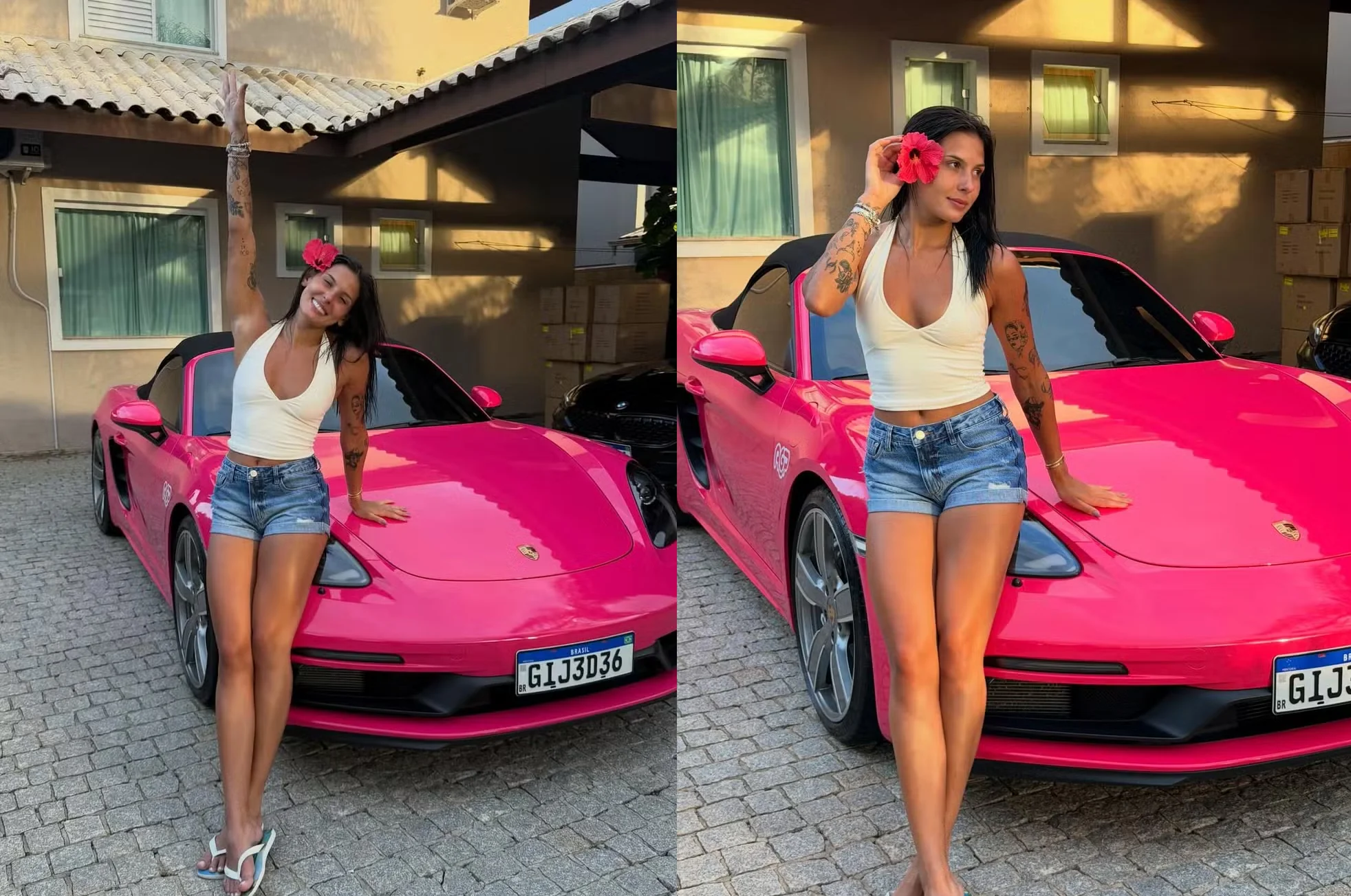Ana Castela compartilhou com seus seguidores, nesta semana, a aquisição de seu novo veículo de luxo: um Porsche 718 Boxster. O modelo conversível, que originalmente se destaca pelo design esportivo e alta performance, passou por um processo de personalização para atender ao gosto da artista. A “boiadeira” publicou um álbum de fotos revelando que o carro foi totalmente envelopado na cor rosa.