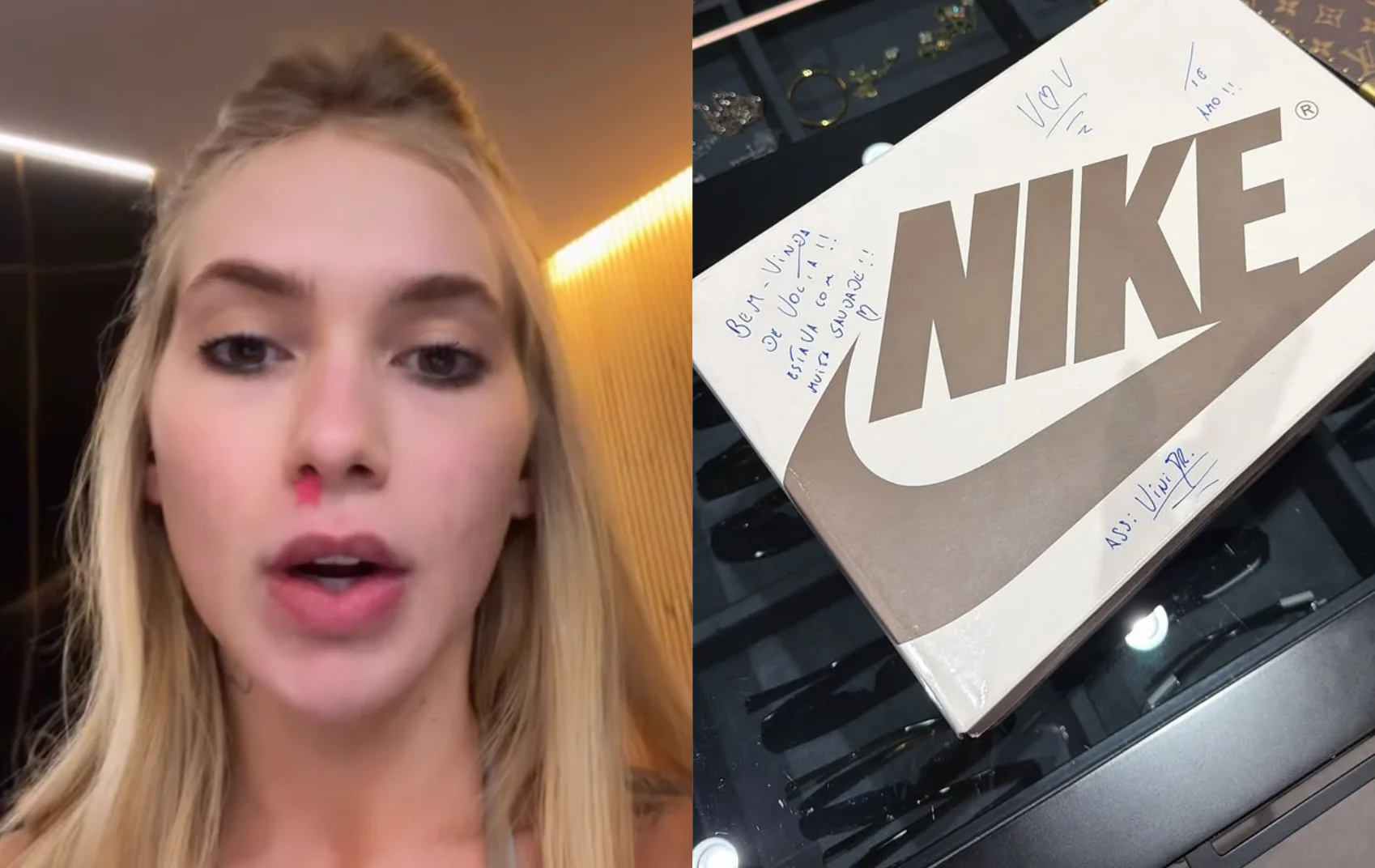Ao chegar à casa de Vini Jr., Virginia foi surpreendida com um tênis acompanhado de um bilhete escrito à mão pelo craque do Real Madrid. Na dedicatória, o jogador expressou sua empolgação com o reencontro: “Seja bem-vinda de volta! Estava com muita saudade. Te amo!”.