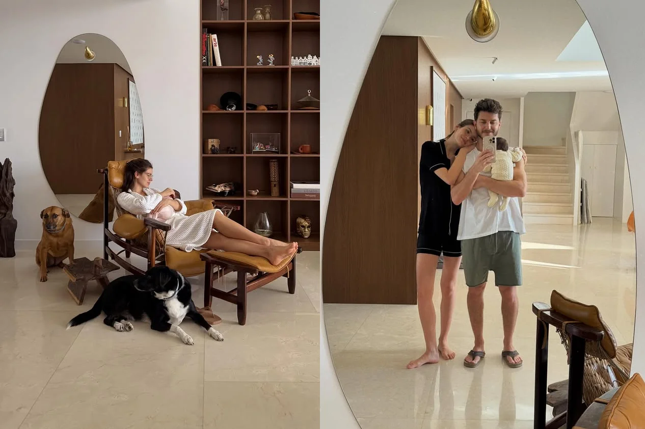 A atriz também comentou sobre a adaptação à nova fase e o impacto na rotina. “A primeira vez que me maquiei depois de ser mãe, tomei um susto: ‘Quem é essa pessoa?'”, disse, ao relembrar o retorno aos compromissos fora de casa.