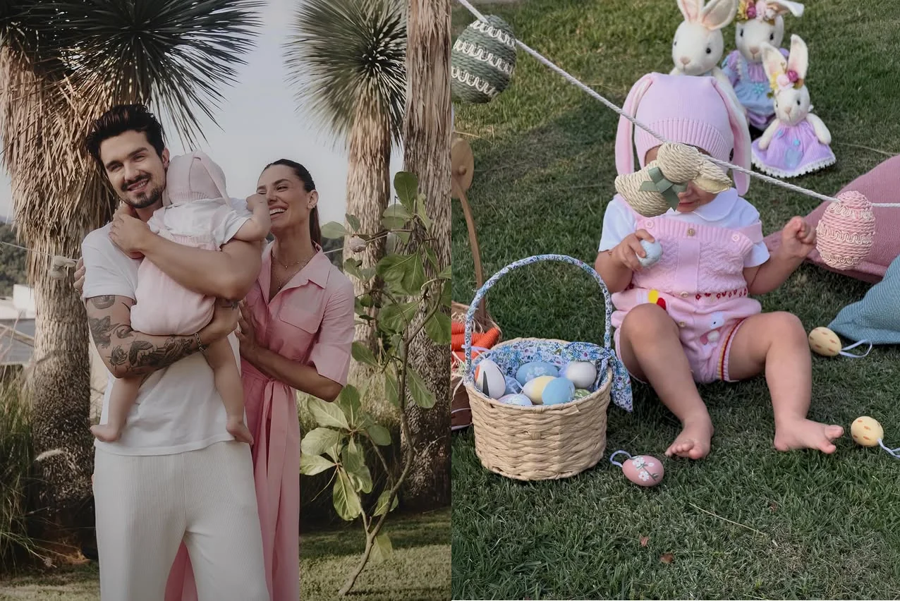 O cantor Luan Santana e a esposa Jade Magalhães compartilharam um ensaio fotográfico de Páscoa ao lado da filha, Serena, de 1 ano. As imagens foram publicadas nas redes sociais e mostram a família em um cenário ao ar livre.