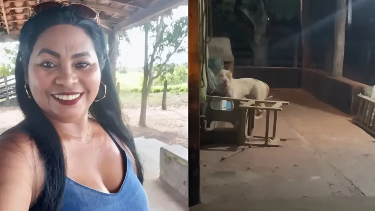 Nas imagens que circulam nas redes sociais, o pitbull aparece passeando pelos cômodos da residência após a tragédia, farejando o ambiente enquanto a pessoa que filma permanece parcialmente escondida. Ao fundo, é possível ver uma cadeira caída no alpendre, evidenciando o susto e a correria que se seguiram ao ataque letal.
