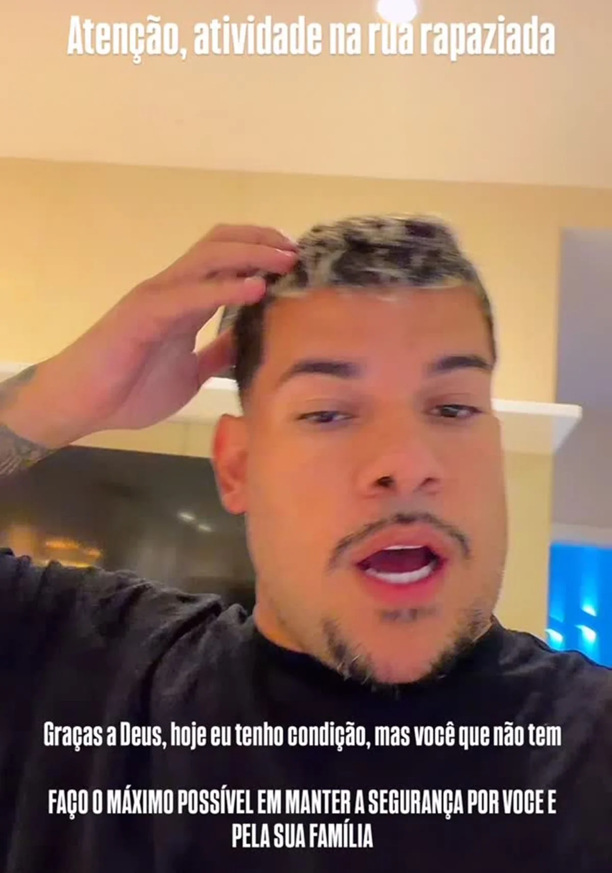 Após o susto, o DJ publicou um vídeo ao lado do filho, no qual fez uma declaração emocionada: “Papai tá aqui pra sempre, filho. Papai vai te proteger pra sempre, cara. Tá maluco! Você não viu nada, né, meu amor! Já está tudo bem. Nem sabe o que tá acontecendo”, disse, aliviado por Kaleb não ter presenciado o momento de tensão.