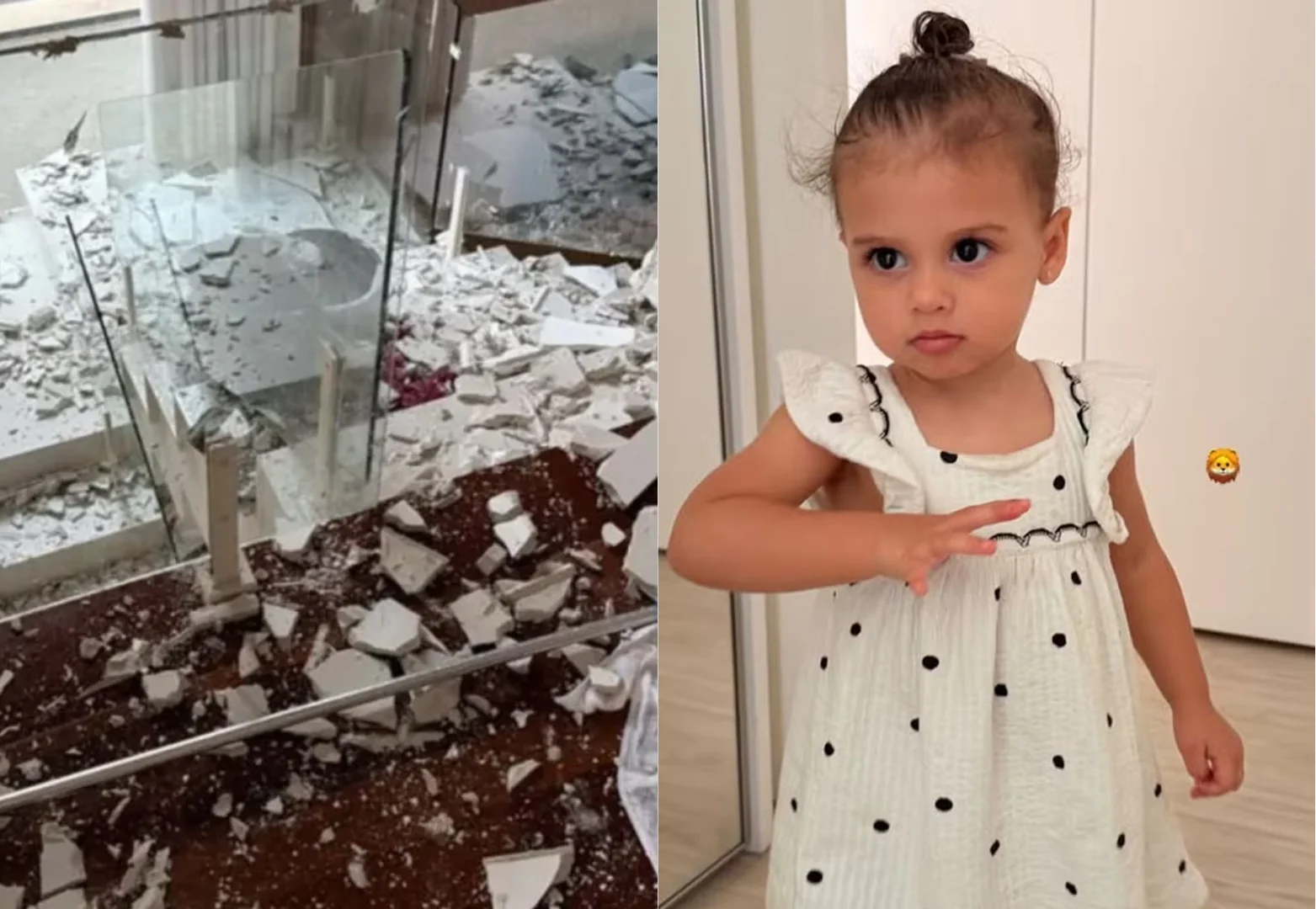 Amanda Kimberlly publicou na última terça-feira (23), um registro da filha Helena, de 1 ano e cinco meses, após relatar que parte do teto de sua casa desabou em decorrência de infiltrações provocadas pelas chuvas em São Paulo. O episódio ocorreu na segunda-feira (22), e levou a influenciadora a compartilhar, nas redes sociais, detalhes do ocorrido e das medidas adotadas para garantir a segurança no imóvel.