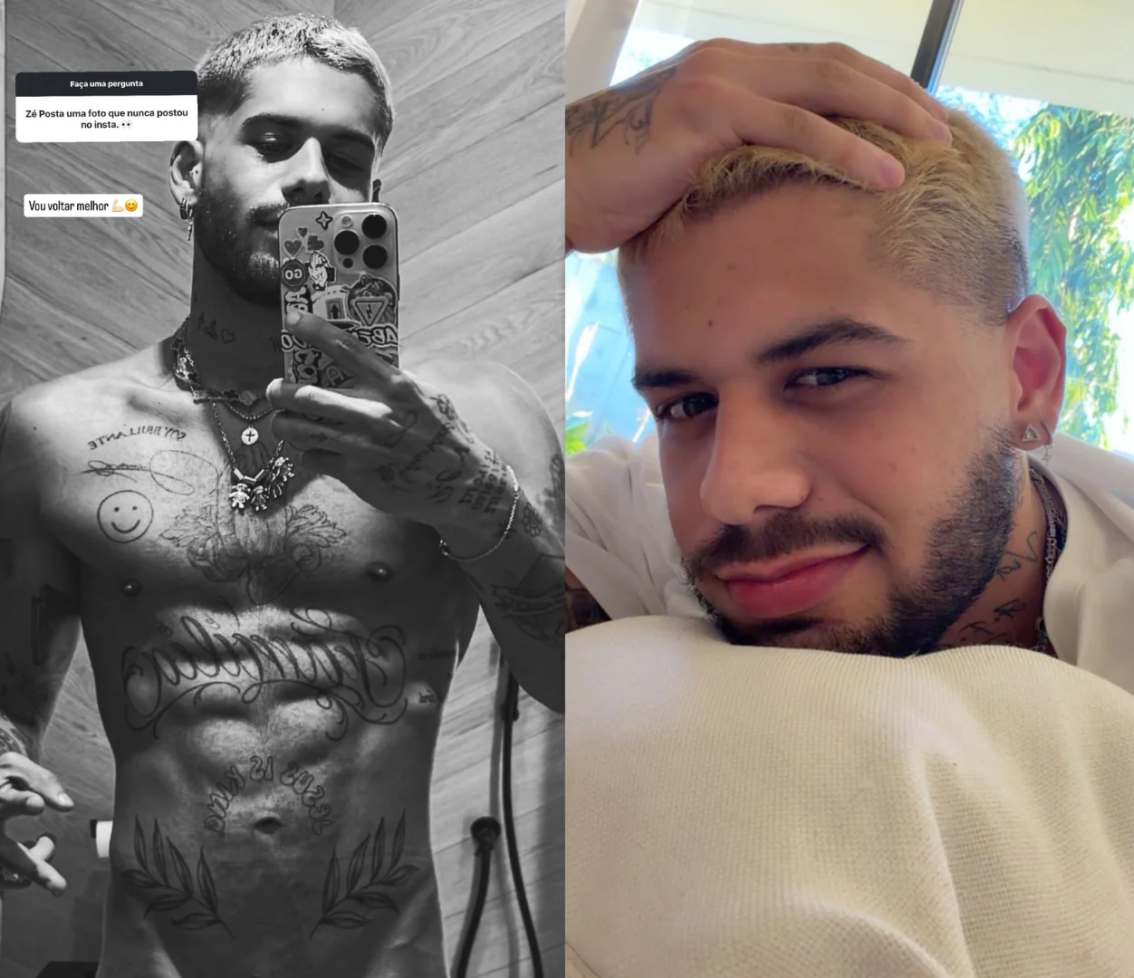 Zé Felipe movimentou as redes sociais na manhã deste sábado (17), com um registro para lá de sensual. Ao interagir com os seguidores em uma caixinha de perguntas, o artista foi desafiado a mostrar uma foto inédita de sua galeria.