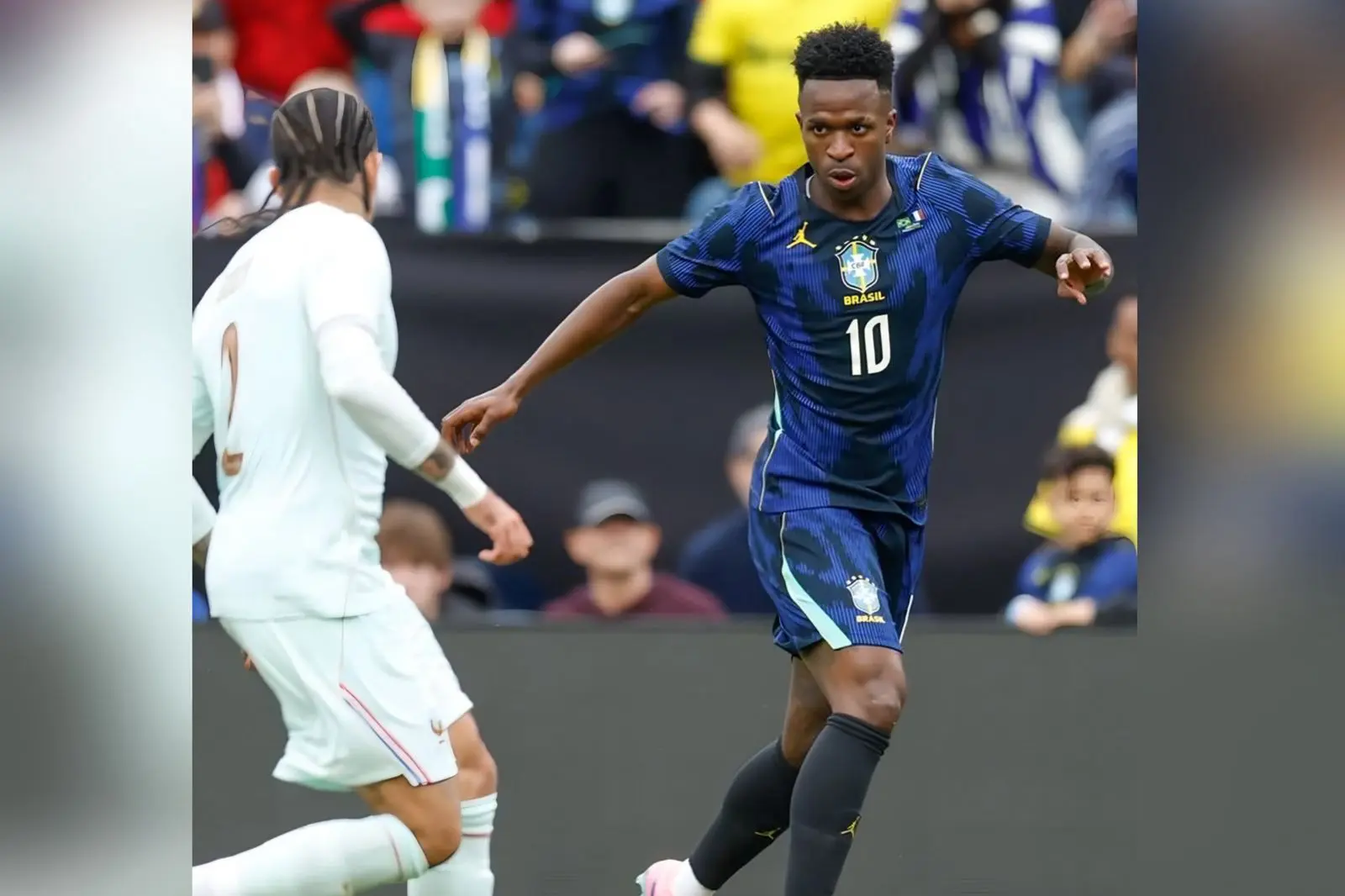 Vinícius Júnior em ação com a camisa 10 da Seleção na partida contra a França. (Foto: Instagram)